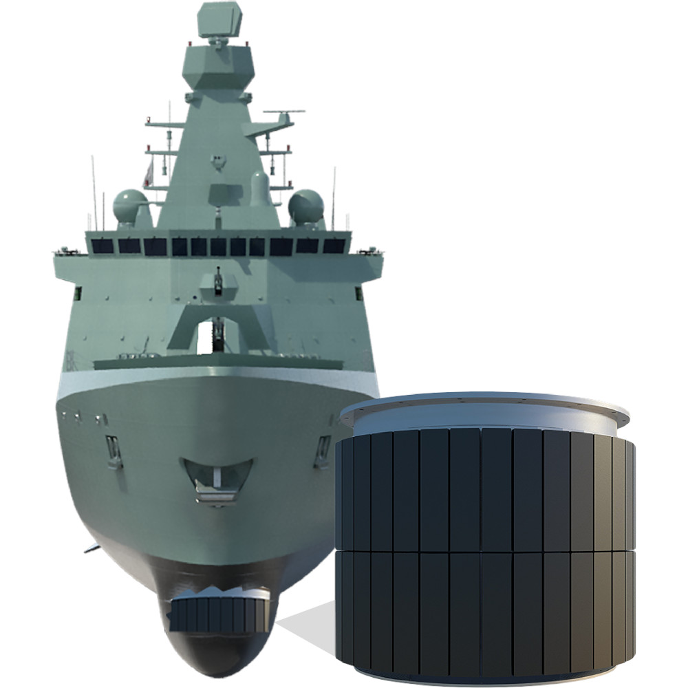 Cylindrical sonar arrays enhance underwater defense by providing full 360° azimuthal coverage, simultaneously detecting and transmitting sound waves in all horizontal directions. These arrays use beamforming techniques to focus and steer signals, improving sensitivity and suppressing unwanted noise. Built for extreme environments, cylindrical transducer arrays operate across frequencies—low frequencies for long-range submarine detection and high frequencies for short-range, high-resolution imaging. The cylindrical housing is engineered to withstand high-pressure underwater conditions, making it a reliable solution for anti-submarine warfare and real-time situational awareness.Advanced Energy develops intelligent AC-DC power solutions to sustain cylindrical sonar arrays, supporting both active and passive sonar operations. High-voltage DC power supplies drive kilowatt-range power systems for active sonar transmission, while modular power architectures provide stable signal amplification power for passive cylindrical hydrophone arrays. With low-ripple high-voltage DC conversion and frequency-scaled power delivery, these power solutions maintain operational integrity in the harshest underwater conditions.