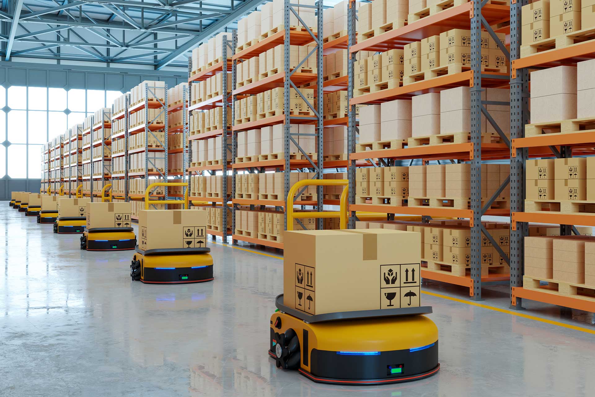 Automated Guided Vehicles (AGVs) are mobile robots that are used to transport materials and goods within manufacturing facilities and warehouses.