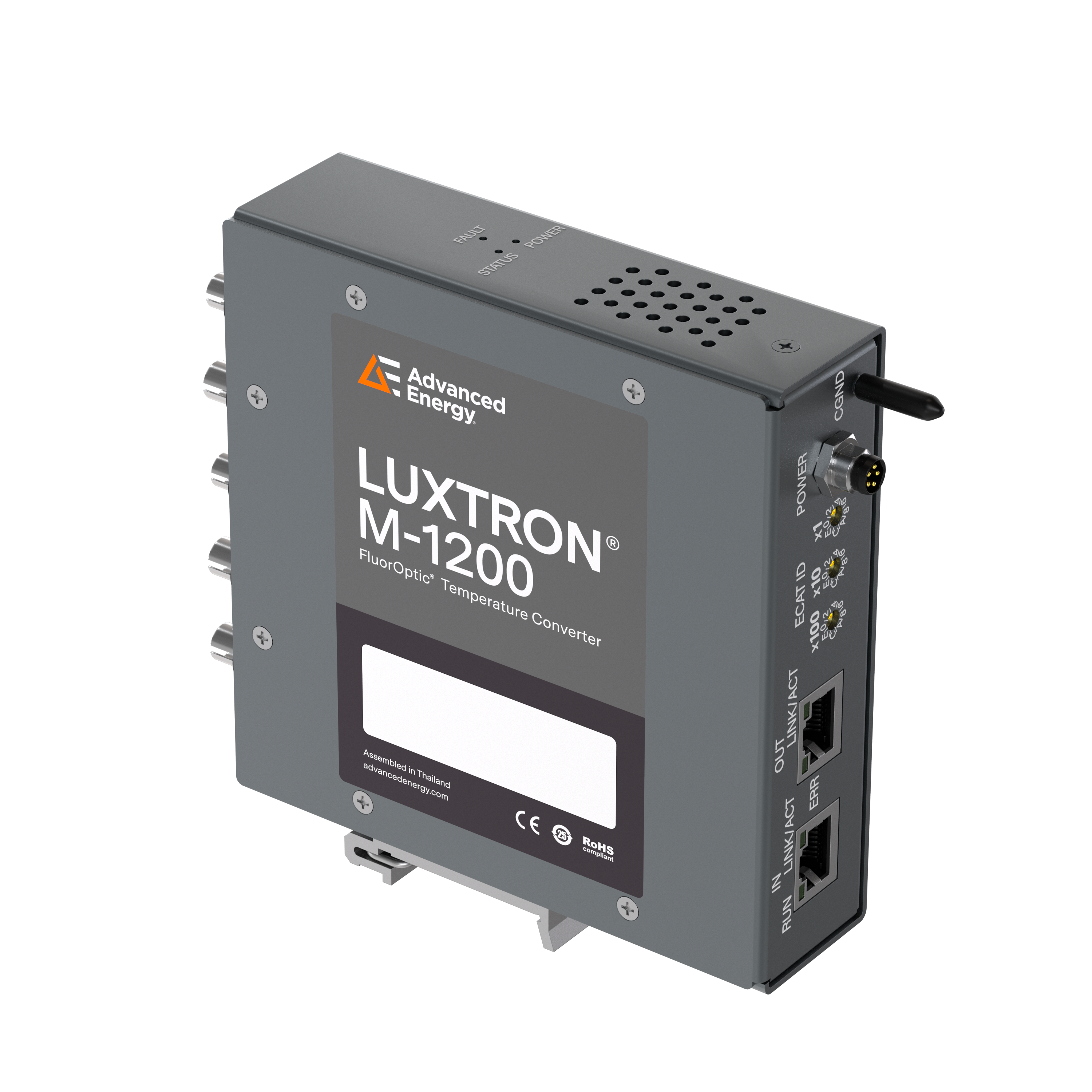 Smaller, more accurate, and with a broader measurement range (-200 to 450°C) than many other contact temperature sensing devices, the Luxtron M-1200 expands process development possibilities. Its ultra-fast EtherCAT fiber optic temperature sensor communication, low-noise electronics, flexible probe configurations, and compact form factor streamline integration into complex semiconductor, medical and industrial temperature monitoring tools.