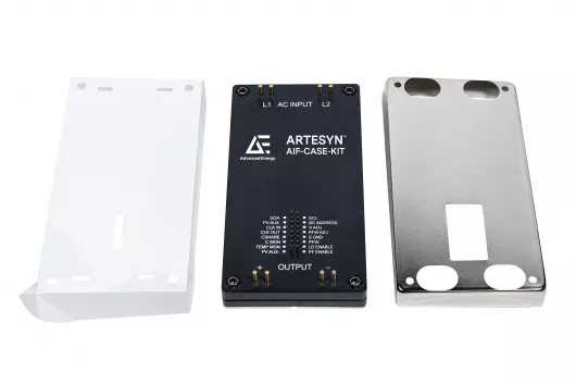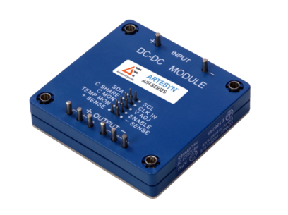 The 2.4 kW AIF06ZPFC series power factor correction module presents a unity power factor from an 85 to 264 VAC input and delivers a high 97.3% conversion efficiency and nominal non-isolated output of 400 VDC. The series features monitoring, protection, and adjustment facilities, a built-in PMBus® interface, internal memory, and internal inrush limiting. Accurate current sharing allows paralleling and a thermal base plate allows a baseplate operating temperature range of -20 to +100℃ with startup from as low as -40℃. Featuring an encapsulated standard 2.4 x 4.6-inch (61 x 116.8 mm) full-brick form factor and an installed height of 0.55 inches (13.7 mm), the series has a power density of 395 W/inch³ (24.1 W/cm³). Insulator-sheet and EMI-shield options are available.