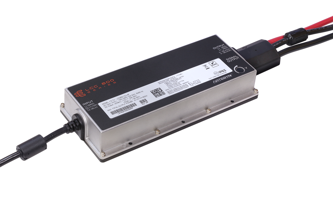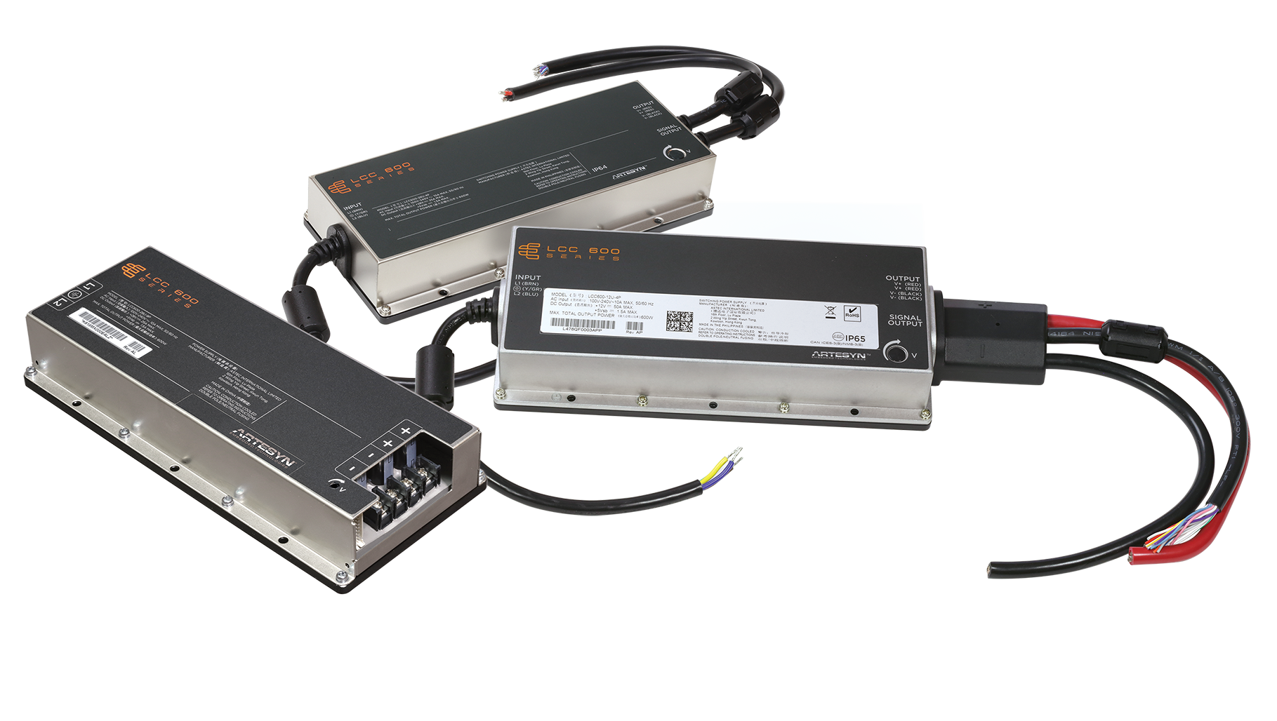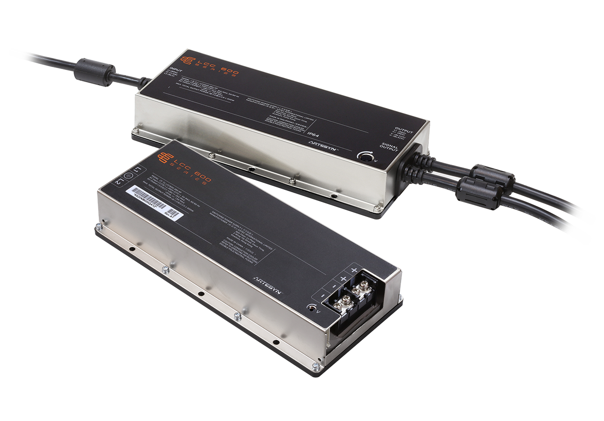 The fully enclosed conduction cooled 600 W LCC600 series of AC-DC power supplies offers main output voltages of 12, 28, 36, or 48 VDC and standby output of 5 VDC @1.5 A (maximum). The supplies feature a universal 90 to 264 VAC input with options for 180 to 305 VAC for three-phase mains input with a 277 VAC Line-to-Neutral configuration. Operating temperature range is -40 to 85℃ and the main output is adjustable with, for example, the 48 V model offering 44 to 54 VDC @12.5 A (maximum). Standard features include AC OK and DC OK signals, remote inhibit and differential remote sense, and protection against overtemperature, overcurrent, and overvoltage conditions. Versions with medical safety approvals are available.