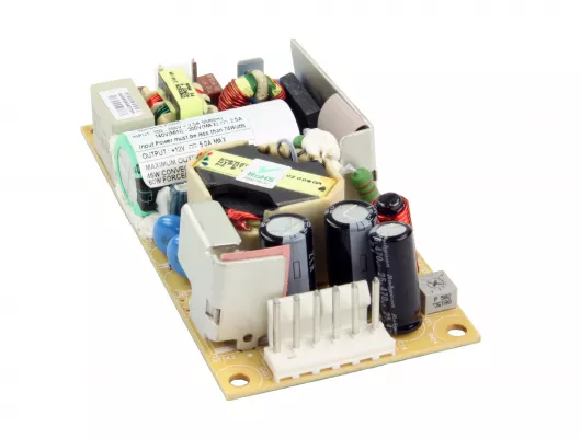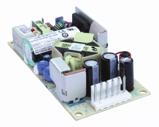 The NPS40-M series of open-frame AC-DC power supplies comprises five single output models, offering voltages of 5 V, 12 V, 15 V, 24 V or 48 VDC. All five models feature ITE and medical safety approvals and are equipped with dual AC fuses. The power supplies have a typical full load efficiency of 87% and a no-load power consumption of less than 300 mW. NPS40-M series power supplies are primarily designed for use in information technology equipment (ITE) and light industrial systems, as well as for equipment intended for non-patient contact and non-patient critical use in low power medical, dental and laboratory applications.