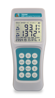 Advanced Energy's TEGAM 931B & 932B datalogging handheld thermometers are utilized in food manufacturing to ensure food safety. Learn how to use the data collection features in this video. The data collection handheld thermometers save up to 1000 time and date stamps measurements in the internal memory. Prior to using the thermometer you will want to set a few settings. We start by setting up the real time clock by pressing set for 1.5 seconds. Momentarily press set until the CLK indicator is lit on the LCD. Use the up and down arrow keys to set the first digit. Press view to move to the next digit and subsequent digits until all of the information has been set. In order to save the the date momentarily press set to move to time. Once you have set the time, momentarily press set one more time. The default interval of the TEGAM data collection thermometer is 10 seconds which is able to be changed to meet your needs. The 900 series provides different data collection methods. The free TEGAMLink T mobile app can collect data on your mobile device and easily transfer to virtually any software. Temperature data may also be collected directly on the thermometer. The temperature data can be collected automatically or manually at specific points. Data collection is easy, accurate and reliable with the TEGAM 931B & 932B Thermometers. When the Measurement Matters, Be Certain with Advanced Energy's TEGAM.